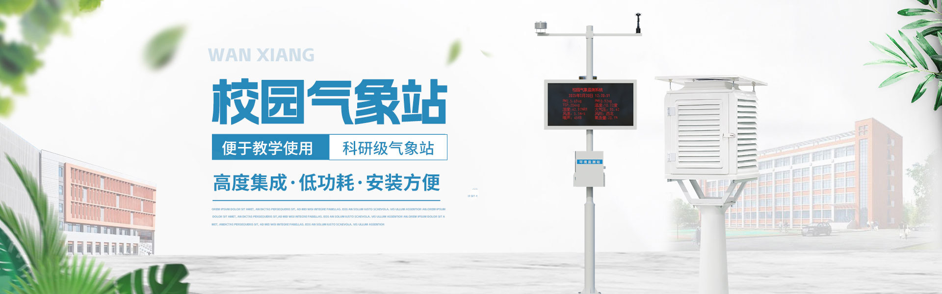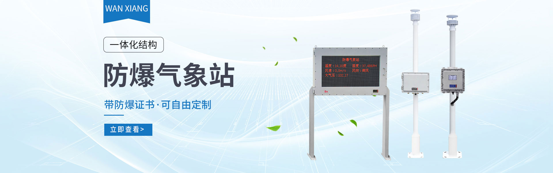 山東萬象環境科技有限公司官網主要產品有防爆氣象站,校園氣象站,農業氣象站,負氧離子監測站,超聲波氣象站,歡迎咨詢13645368788!
